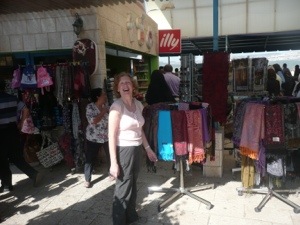 We survive the hectic drive up the narrow road to the top of Mount Tabor. Our driver scares the living daylights out of us – driving far too fast, talking on his hand-held mobile phone the whole way, taking his other hand off the wheel periodically to wave to his fellow drivers coming the other way. There is a big sign in his minibus over a large box asking us to leave him a tip … fat chance! We are dumped unceremoniously in the turning area at the top of Mount Tabor, and walk the short distance to the church and the viewing platform. We like the church. It is bright and airy with lovely wall paintings. There are lots of people and Mass is being said in the lower sanctuary. We sit and listen for a while and then join the crowds on the viewing platform. There are lovely gardens here and we spend an hour or so just taking in the sights and sounds. Julia and I find a quiet place and Julia reads the biblical story of Jesus’ Transfiguration (Matthew 17). We sit and reflect prayerfully for a while before getting back on one of the minibuses and descending down the mountain to our own little coach.