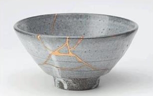 I recently saw a photograph of a broken pot that had been mended using the kintsukuroi method. Kintsukuroi is the Japanese art of repairing broken pottery with gold or silver lacquer. It enshrines the belief that the piece in question can actually be made even more beautiful for having been broken. I am used to mending broken pots – my mother-in-law is a potter and our large garden is full of her creations that sometimes get broken by either the elements or wild animals. I have become an expert in the use of ‘super glue’ … but none of my repaired broken pots are as magnificent as those put back together again with the use of kintsukuroi.