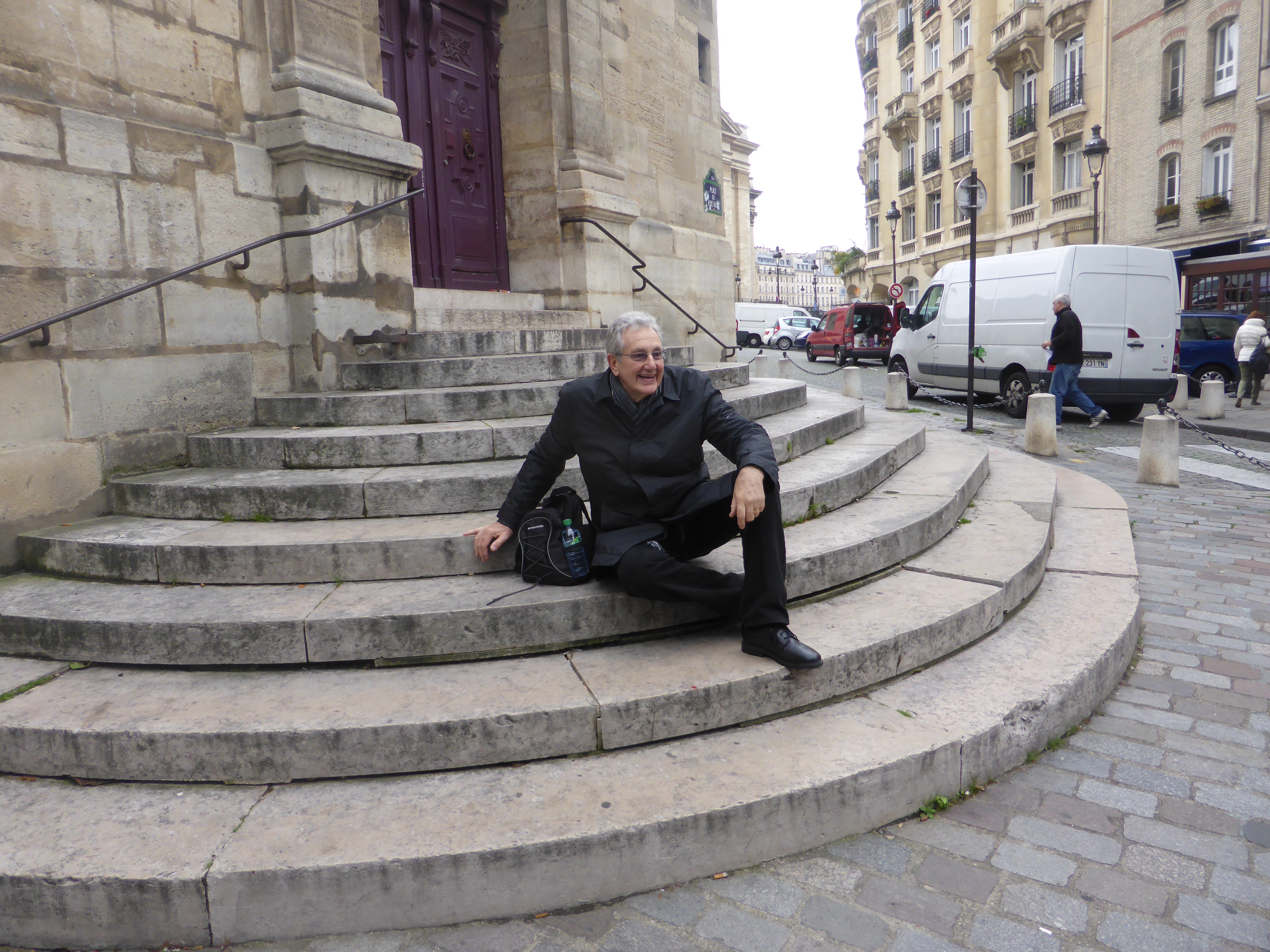 We find the church, and before we look around, we go and sit on the steps in the very place where Gil Pender sat in the movie. Julia is taking my photograph when a tour party of Americans walk by. They stop and wonder what we are doing. I explain that we are re-enacting a key scene from Woody Allen’s film Midnight in Paris and that these steps play a central part in the film … and suddenly I am surrounded by American tourists all taking photographs of me?! I guess that I will soon be famous myself … on numerous Facebook pages across the USA?!