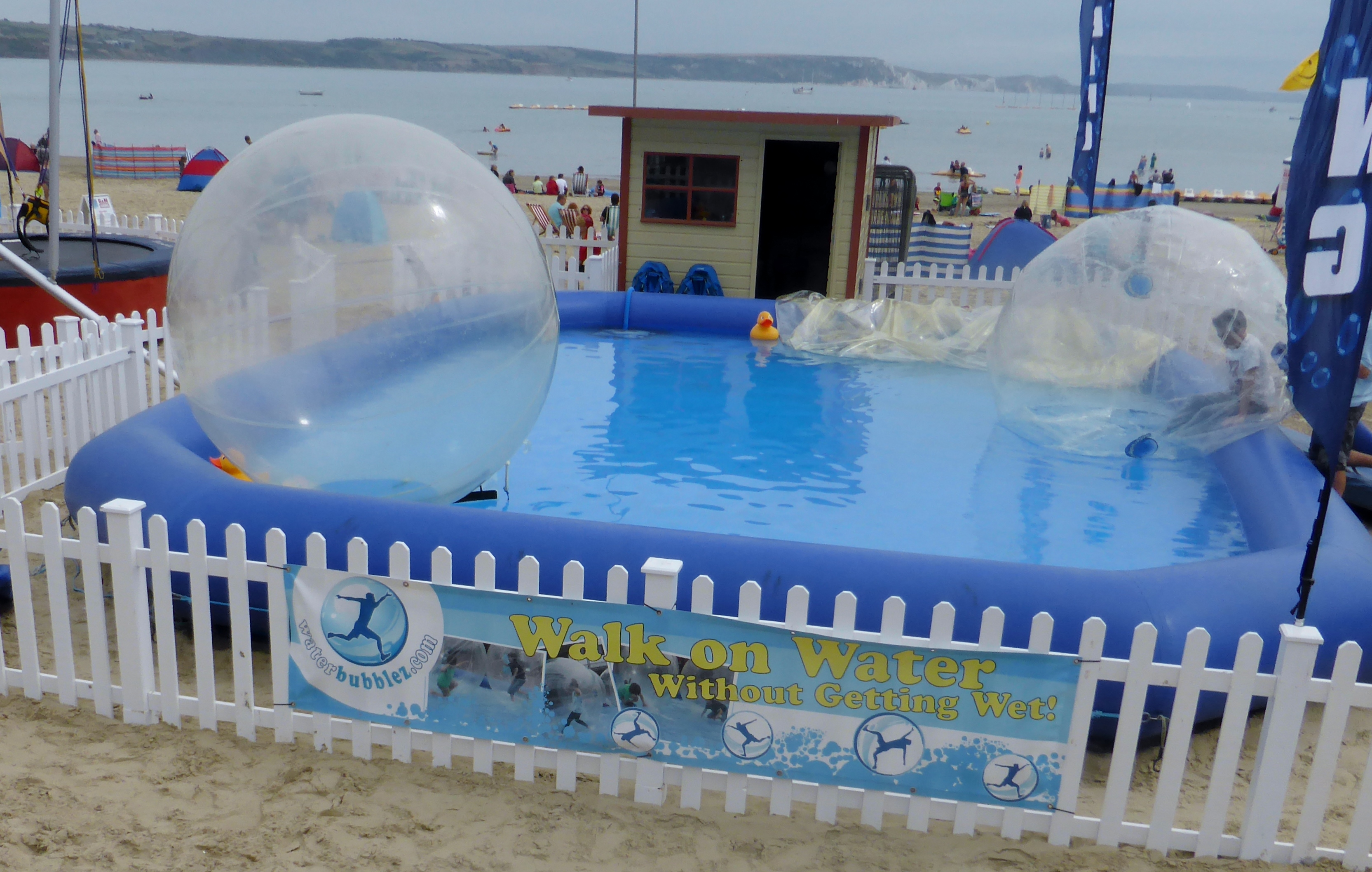 I am still thinking about Jesus, and the place we either give him or don’t give him in our lives, when I spot a ‘new attraction’ amongst the various side-shows on the beach that I have not seen previously. Appropriately it is called ‘Walk on Water … Without Getting Wet!’ It consists of a large water-filled pool containing child-sized, air filled, water-tight ‘bubbles’ that kids can stand in and ‘walk on the water without getting wet’. It looks great fun and I wish they had a much larger pool with ‘adult sized’ bubbles so that I could have a go. I expect that somewhere or other such a thing exists … just not here in Weymouth.