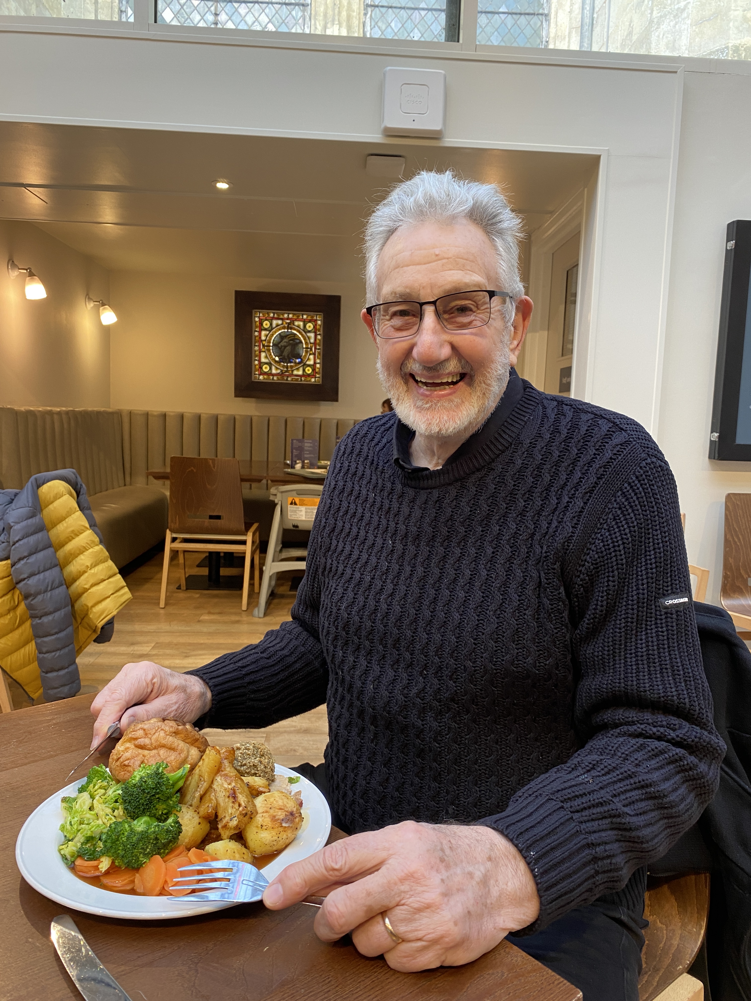 After the Service we wandered over to Sarum College, to return some books to the college library, and then decided to have lunch back at the Cathedral Refectory rather than wander round Salisbury looking for a restaurant. ‘We will just have a bowl of soup … and maybe I will allow you to have a sandwich … because we are having a big meal tonight!’ Julia said, authoritatively. The Cathedral Refectory Restaurant is excellent – we have eaten there before – and a very pleasant venue. Surprisingly it wasn’t as crowded as we expected (perhaps it was a bit early for Sunday lunch) and we found a nice table. Sunday lunch at the Refectory is (I would suggest) a bit special. We took one look at what was on offer, and how reasonably priced it all was, and … any idea of ‘just a bowl of soup’ went right out the window. The best Sunday lunch we have had so far this year by far! If you ever find yourself in Salisbury visit the Cathedral and have lunch at the Refectory Restaurant.