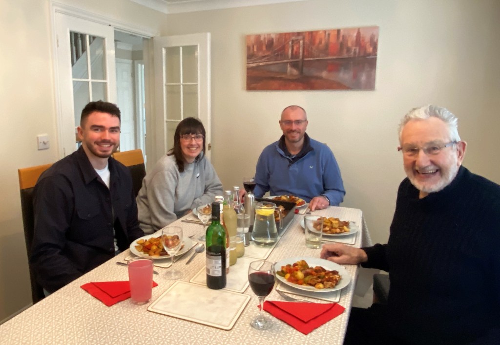 After the Service we drove back to Caroline and Simon’s lovely house in Elvetham Heath for an excellent Sunday lunch and a chance to catch up on family gossip as well as matters of faith and putting the world to rights! Sam, Caroline and Simon’s son, was there as well (they have a married daughter, Hannah, who now lives in London). Sam is studying at the University of Exeter but is living at home at the moment because his course requires him to have a year out on secondment, and he is working for L’Oréal for a year. Simon and Sam are Chelsea supporters so, as a Brentford supporter, I enjoyed bragging rights (Brentford being above Chelsea in the Premier League Table) for a change! We enjoyed an excellent lunch and Caroline had even made apple crumble with custard for pudding (a rare treat for me these days).